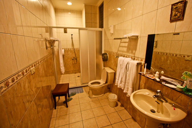 I opted for Taiwan Beer. I great change of pace after so much tea recently. The bathroom in our room was impressive. Amazing deal, ~$80 for a 4 person room...