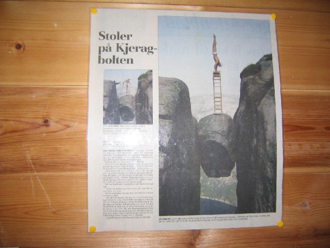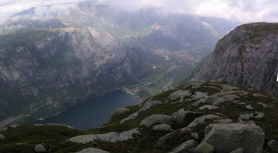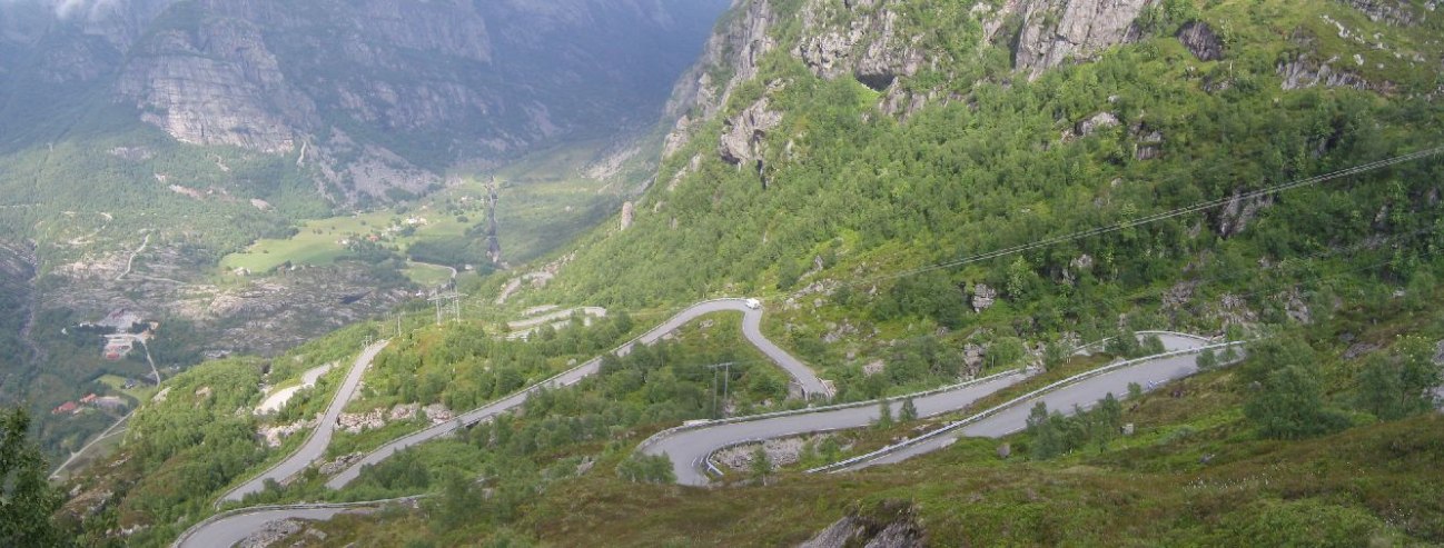 To Lysebotn for the rock! www.norguide.no said it was 4hr 30 min, 330km. Norway roads are REALLY slow, and it took a little while to get used to driving on their roads, and in kilometers instead of miles. I got used to the lower gears on hills very quickly as I hit switchbacks on mountains on the way. I didn't get there til 4:15, but I also wasted about 45 minutes thinking I had made a wrong turn, backtracking, and then realizing I was right all along. 100 yards further I would have see a sign for Lysebotn…