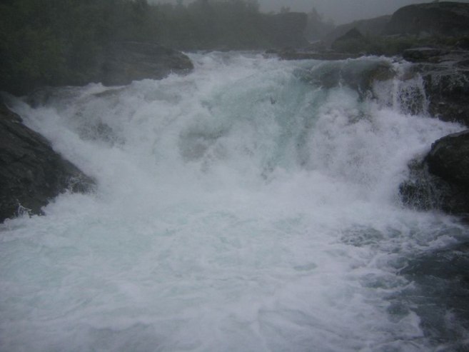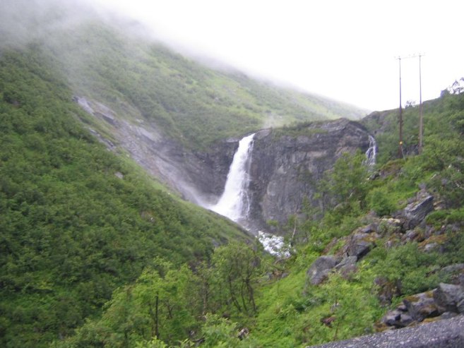 Moved on towards Loen, to climb Skala, a 6000ft mountain located next to an inlet at sea level. But it continued to rain, and the fog was heavy. Didn't make sense to do a steep hike in the rain to a cloud covered top. We decided to turn around about 23km before Loen, and head west towards Lom in hopes of better weather around the Jotunheimen mountains for a hike.