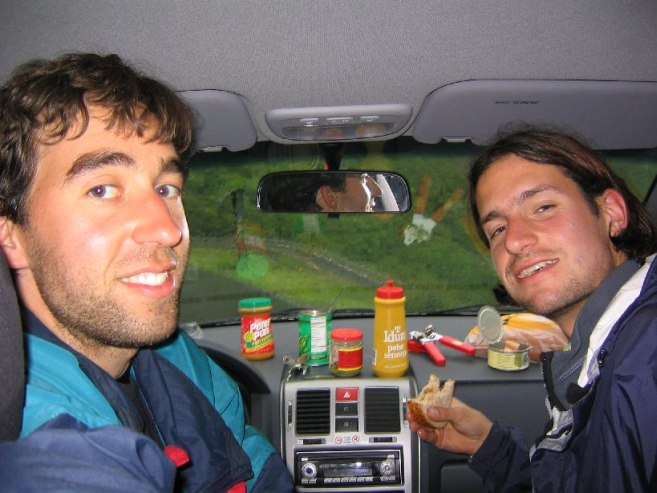 Got up shortly afterwards, and our sleeping bags were a bit wet on some parts, but dry inside. We packed up and set off south in the fog and rain, hopeful for a quick change in weather.