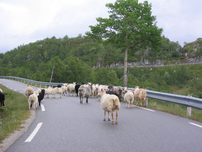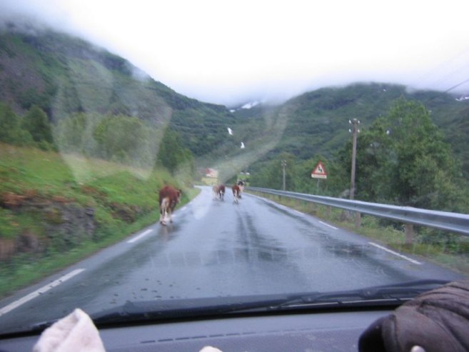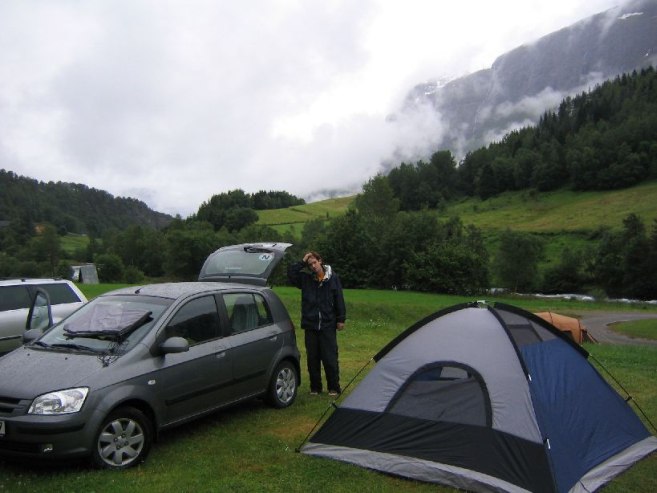 After this ~1750ft climb, we headed back, and arrived at the car at 10:10pm. On the way out of town, we stopped at the lookout spot where we ate, and took a few pics of the fjord. Then we drove back to Lom (for the 3rd time for me), and then toward Gjendesheim for the last hike tomorrow. Found a camping place on the side of the road ~30km from Gjendesheim.